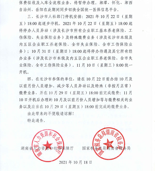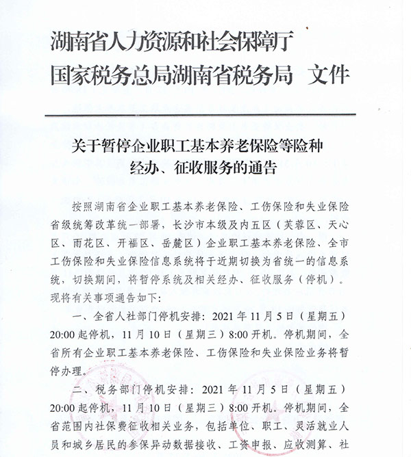 關(guān)于暫停企業(yè)職工基本養(yǎng)老保險等險種 經(jīng)辦、征收服務(wù)的通告